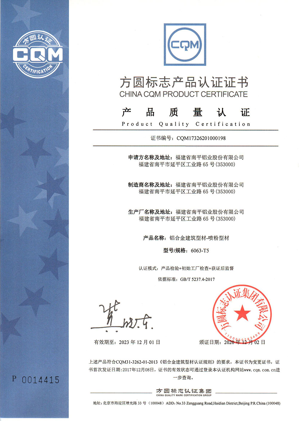 噴粉型材產品質量認證