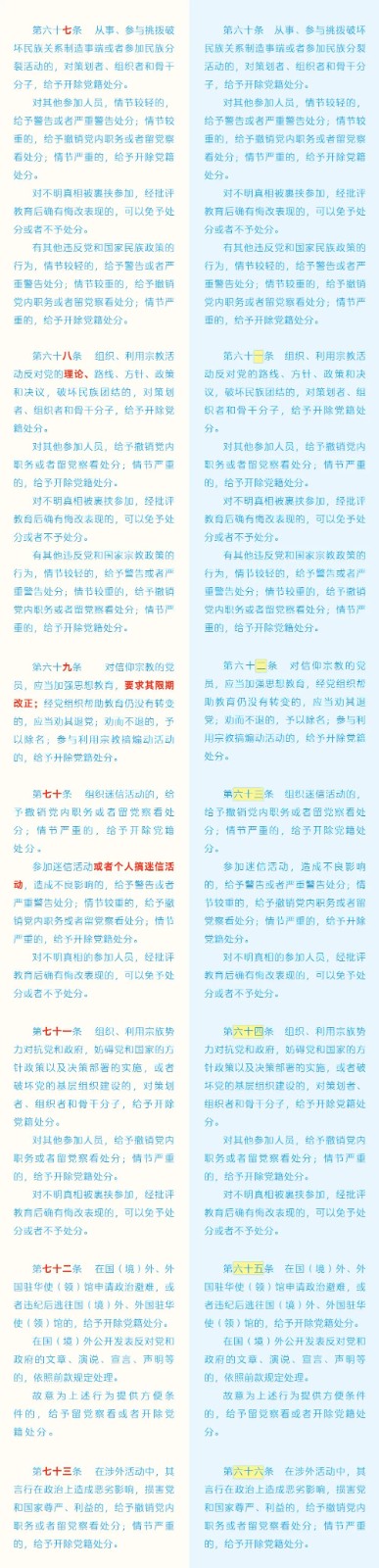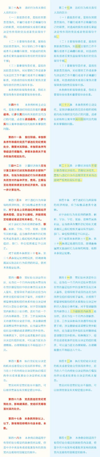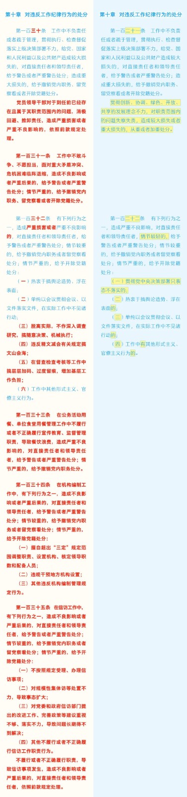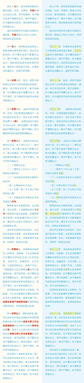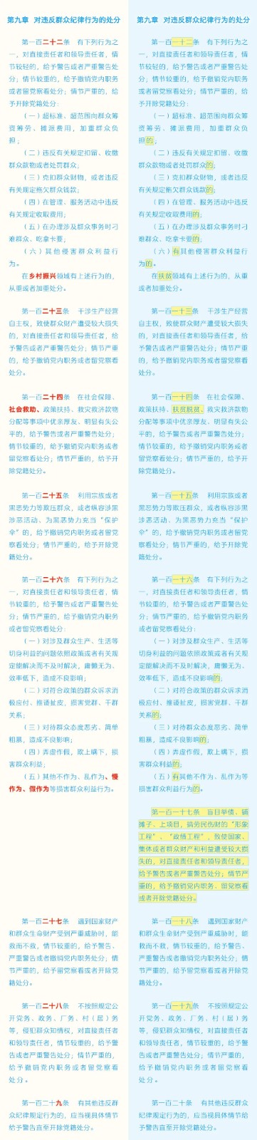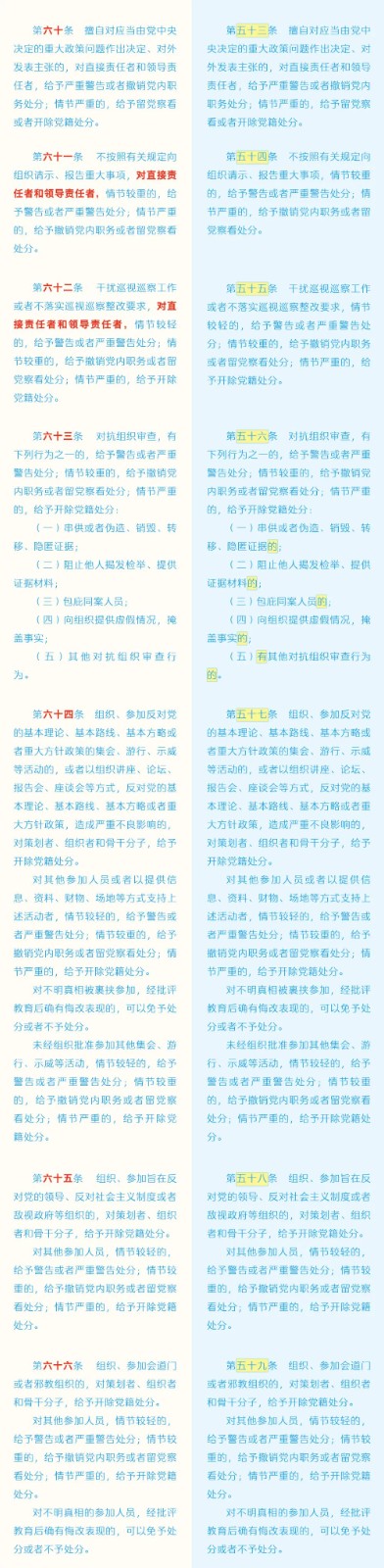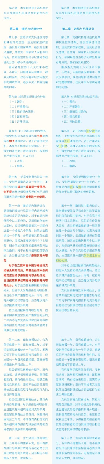 《中國(guó)共產(chǎn)黨紀(jì)律處分條例》修訂條文對(duì)照表 發(fā)表時(shí)間:2024-01-04